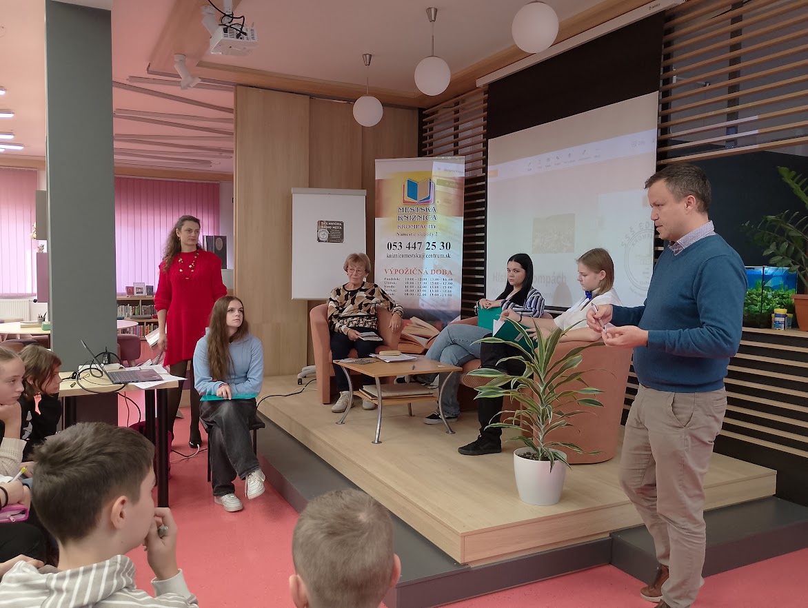 Dnes sme v knižnici privítali študentov zo SSŠ Eduram, ktorí pripravili pre šiestakov zo ZŠ s MŠ Maurerova prezentáciu o histórii nášho mesta "Živá história nášho mesta". Žiakov a študentov na úvod privítala pani Mgr. Slavomíra Kurillová Hubinská a odovzdala slovo primátorovi mesta Ing. Dáriusovi Dubiňákovi, ktorý ich pozdravil a pripomenul, že história nášho mesta je veľmi bohatá a právom máme byť hrdými občanmi, ktorí budú mesto budovať a zveľaďovať v budúcnosti. Potom študenti zo SSŠ Eduram oboznámili deti s niektorými významnými momentmi i osobnosťami mesta. Na záver prezentácie mali pripravený kvíz, prví traja žiaci boli aj odmenení. No a celkom na záver dostala slovo pani Mgr. Anna Pustayová, ktorá deťom priblížila tie zaujímavé momenty z dejín nášho mesta, ktoré v prezentácii nezazneli.